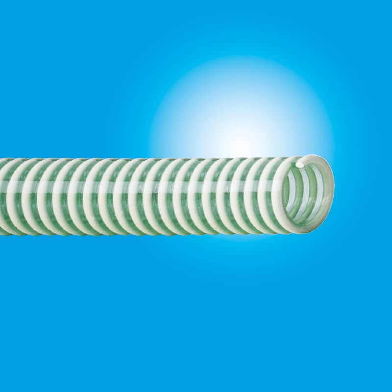 De Cosmo vacuümpomp slang is een groene, kunststof transparante slang en voorzien van een opgesloten wit hard PVC spiraal. De slang is inwendig glad en uitwendig gegolfd.